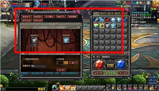 若放入基础材料足够,选择预合成的数量,点击“合成”按钮,会合成好相应的目标材料自动放入包裹内,同时会消耗掉一定数量的银币。