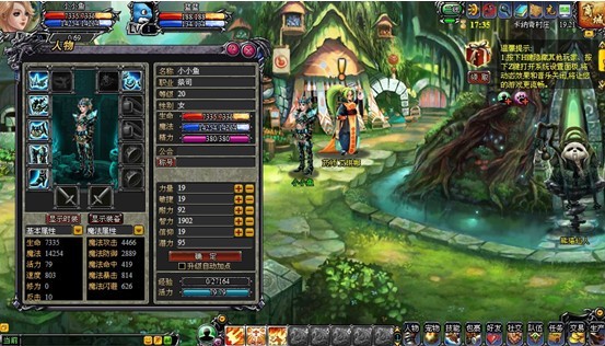 人物界面主要包含装备栏、人物的基本属性、物理属性、人物的基本信息、潜力点分配、活力系统。