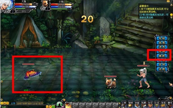 小提示:目前版本中可捕捉的怪物为狐狸、蜜蜂、蝙蝠、野猪、蝎子、花妖、老虎、木乃伊。