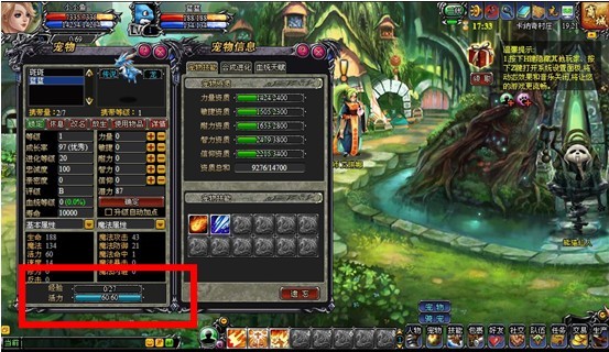 宠物的活力值关乎着宠物参加的战斗次数,以及宠物的技能使用和合成,战斗结束或者使用技能和合成后会消耗一定的活力。宠物活力值的初始上限值为60点,每升一级上限值会提高1点。