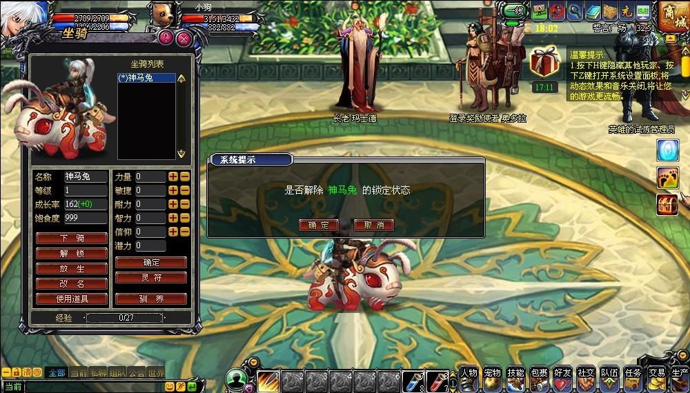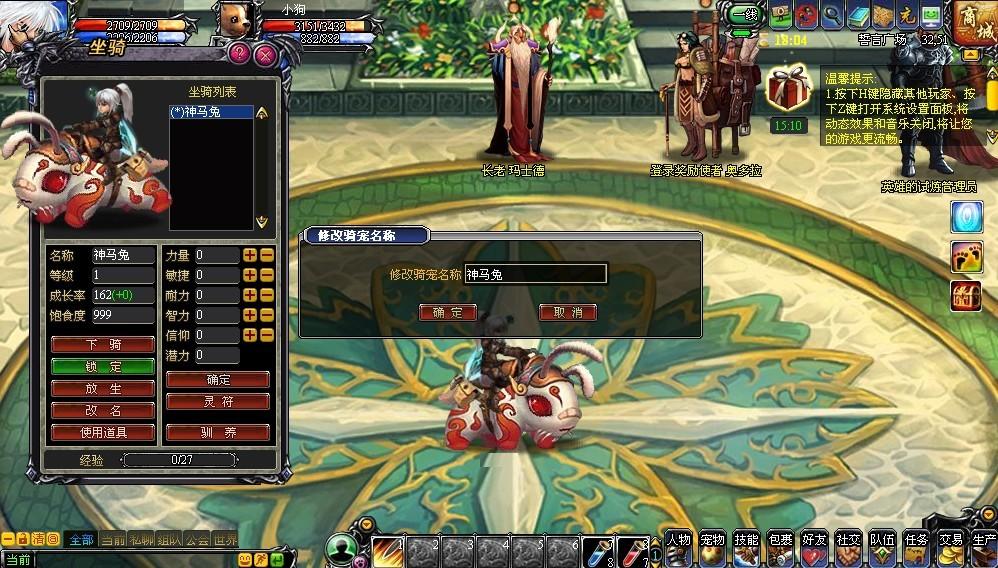 改名:点击“改名”按钮,即可弹出改名界面,输入名称,点击确定,可完成骑宠的改名。