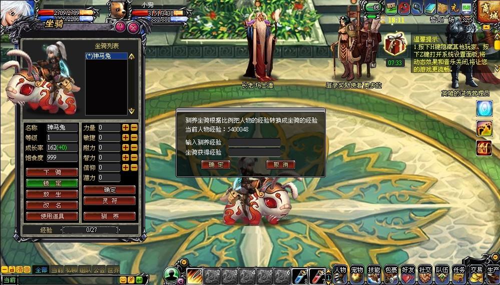 驯养:驯养骑宠根据比例把人物的经验转换成坐骑的经验。