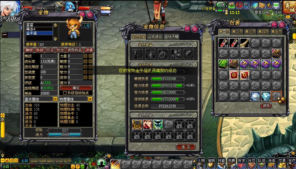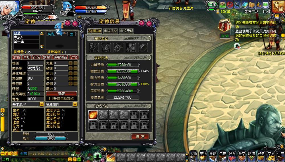宠物使用灵魂契约符后,能够从5项资质(力量、敏捷、耐力、智力、信仰)中随机抽取两项按比例进行提升,提升的比例也是随机生成的。