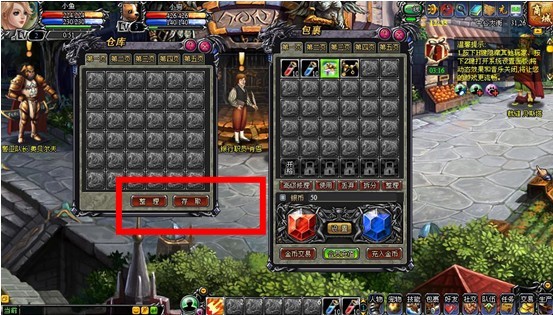 存取:鼠标右键点击包裹内物品,即可存入仓库,如需从仓库内取出,可以在仓库界面内鼠标右键点击物品道具,还有更便捷的方法是用鼠标直接拖拽物品自由存取。