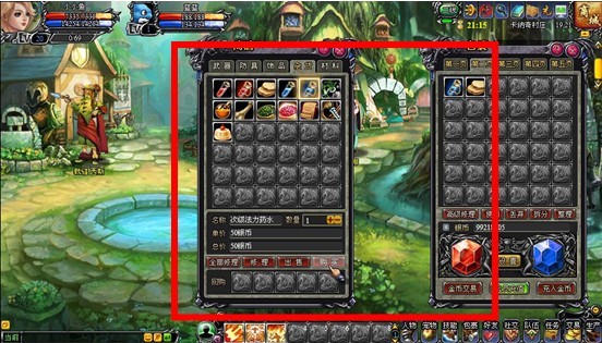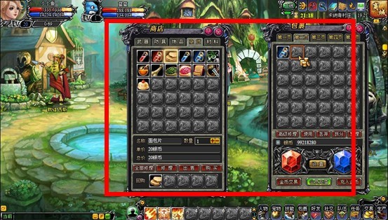 如欲购买物品,在金钱充足的情况下,左键选择好欲购买的物品,点击“购买”按钮,则购买完成,包裹栏里中增添相应物品,且金钱减少相应数量。金钱不足或包裹栏中放置物品的位置不够时,则无法进行购买。