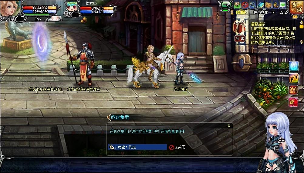 与誓言城北一区(30,29)的NPC约定使者对话,打开约定面板,通过下拉列表, 即可选择购买所需的约定。玩家可同时领取多种不同类型的约定。