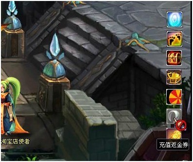 1.活动开启后游戏界面右下方(下图所示)将出现充值返金券按钮